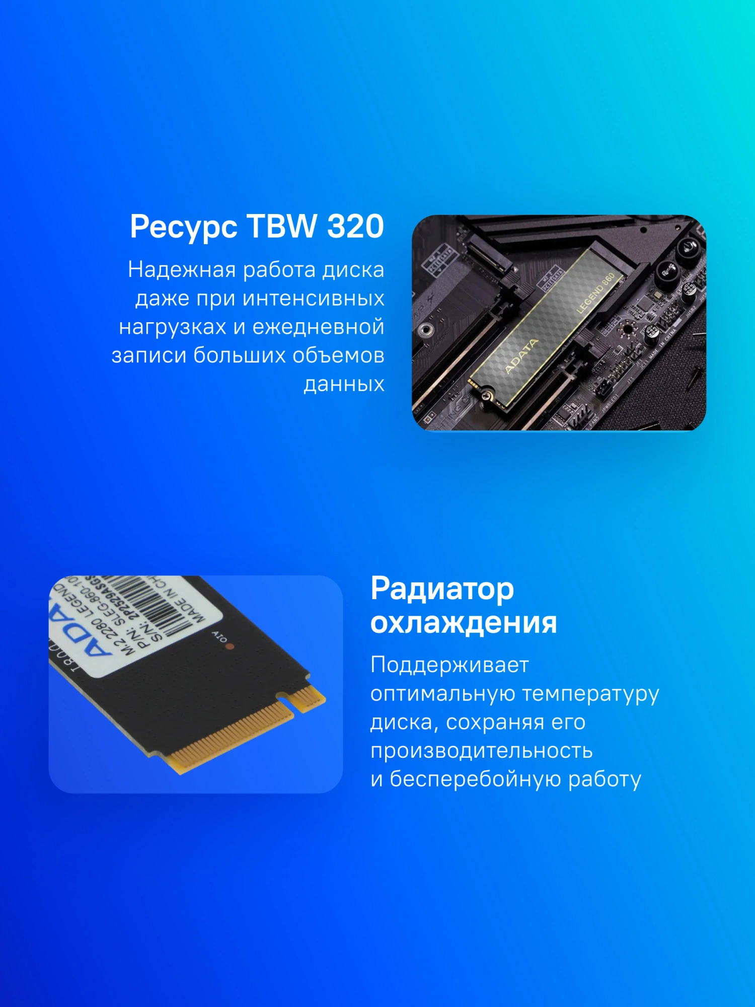 Твердотельный накопитель SSD M.2 A-DATA 1.0TB LEGEND 860 (PCI-E 4.0 x4, up to 6000/4000Mbs, 3D NAND, 320TBW, NVMe 1.4, 22x80mm, радиатор)