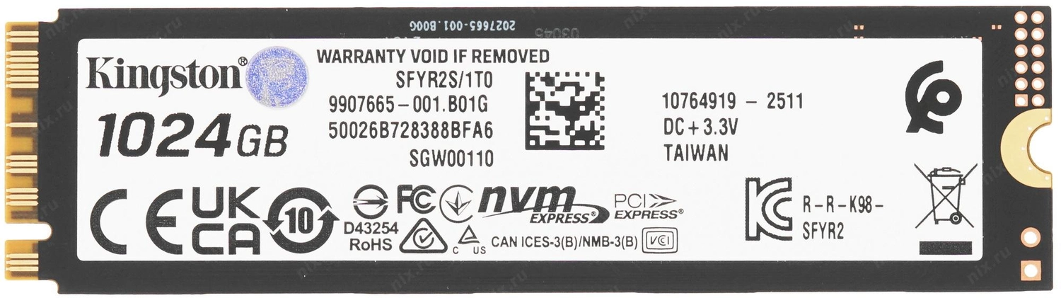 Накопитель Kingston SSD 1Tb M.2 SFYR2S/1T0 M.2 2280 NVMe Fury Renegade