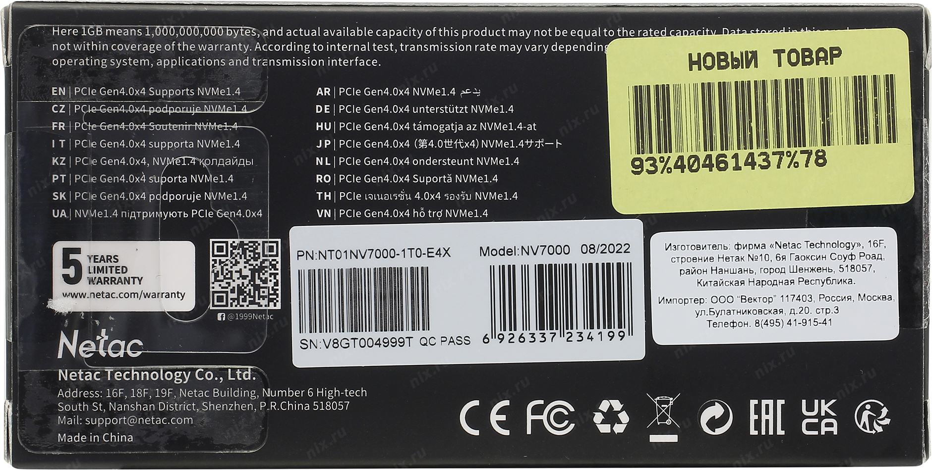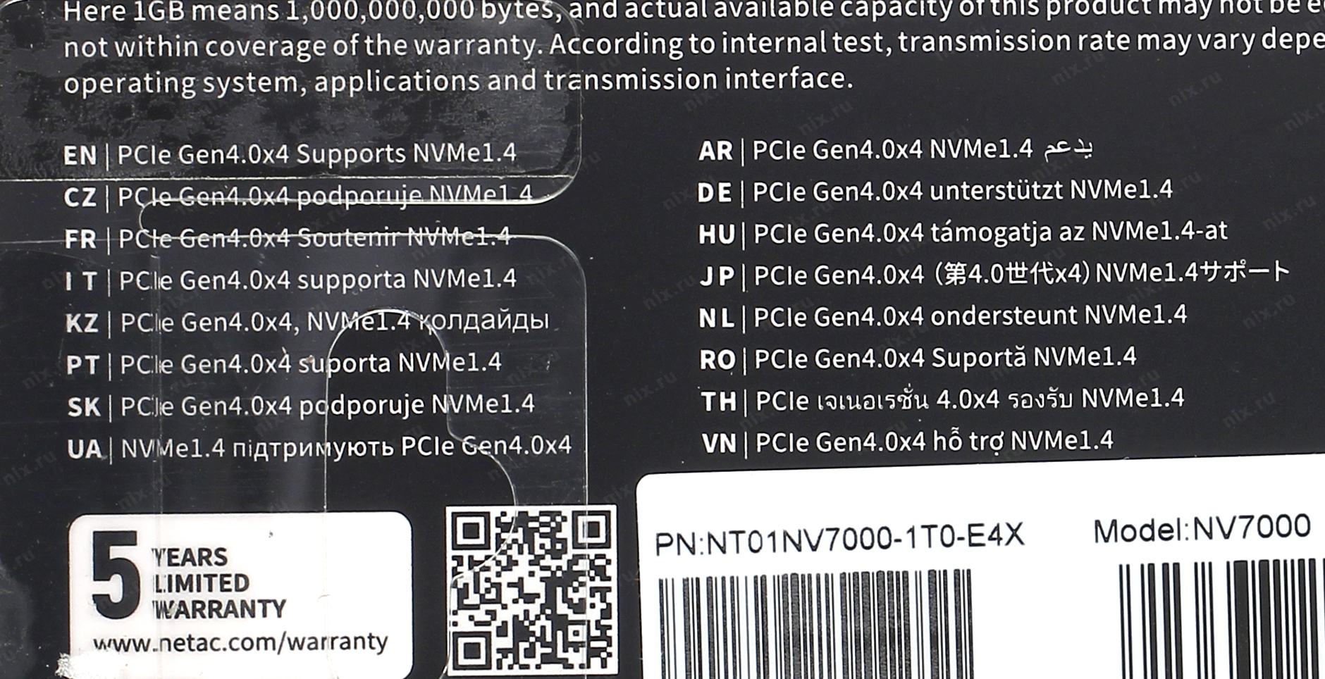 Накопитель SSD Netac PCIe 4.0 x4 1TB NT01NV7000-1T0-E4X NV7000 M.2 2280