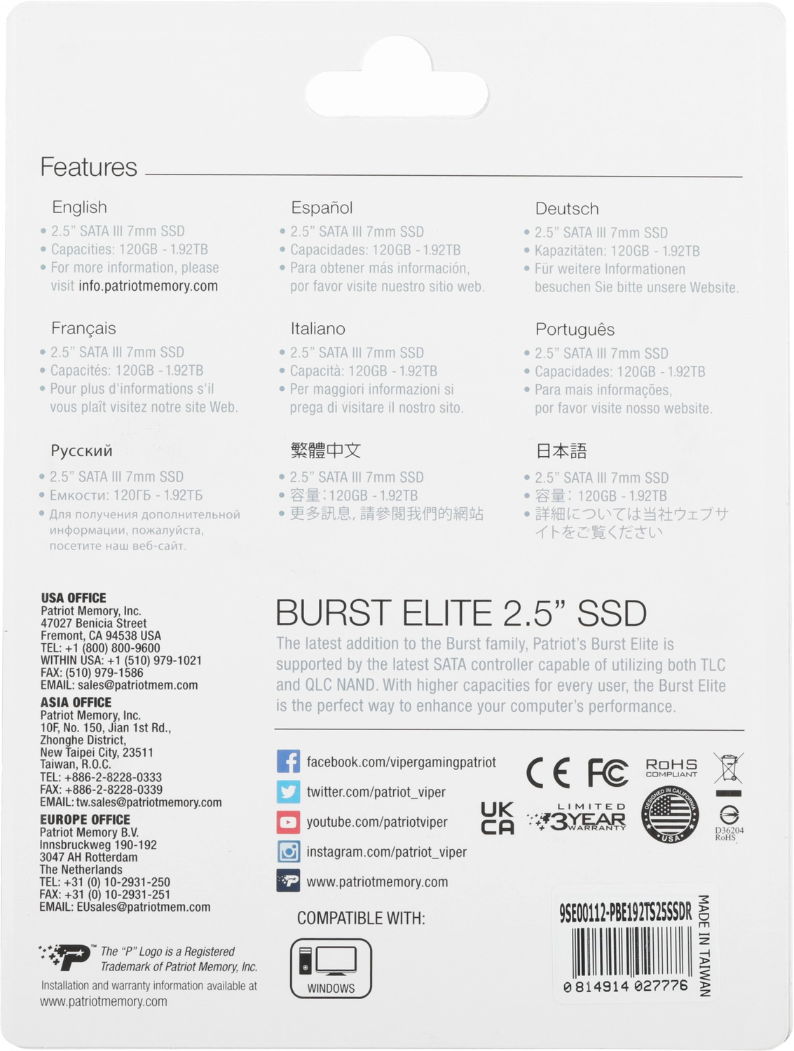 Накопитель SSD SATA 2.5" 1.92TB BURST E PBE192TS25SSDR PATRIOT