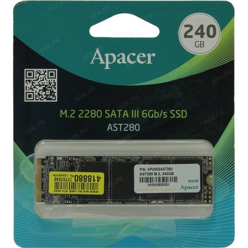 Твердотельный накопитель Apacer SSD AST280 240Gb SATA M.2 2280, R520/W495 Mb/s, 3D TLC, MTBF 1,5M, 140TBW, Retail, (AP240GAST280-1)