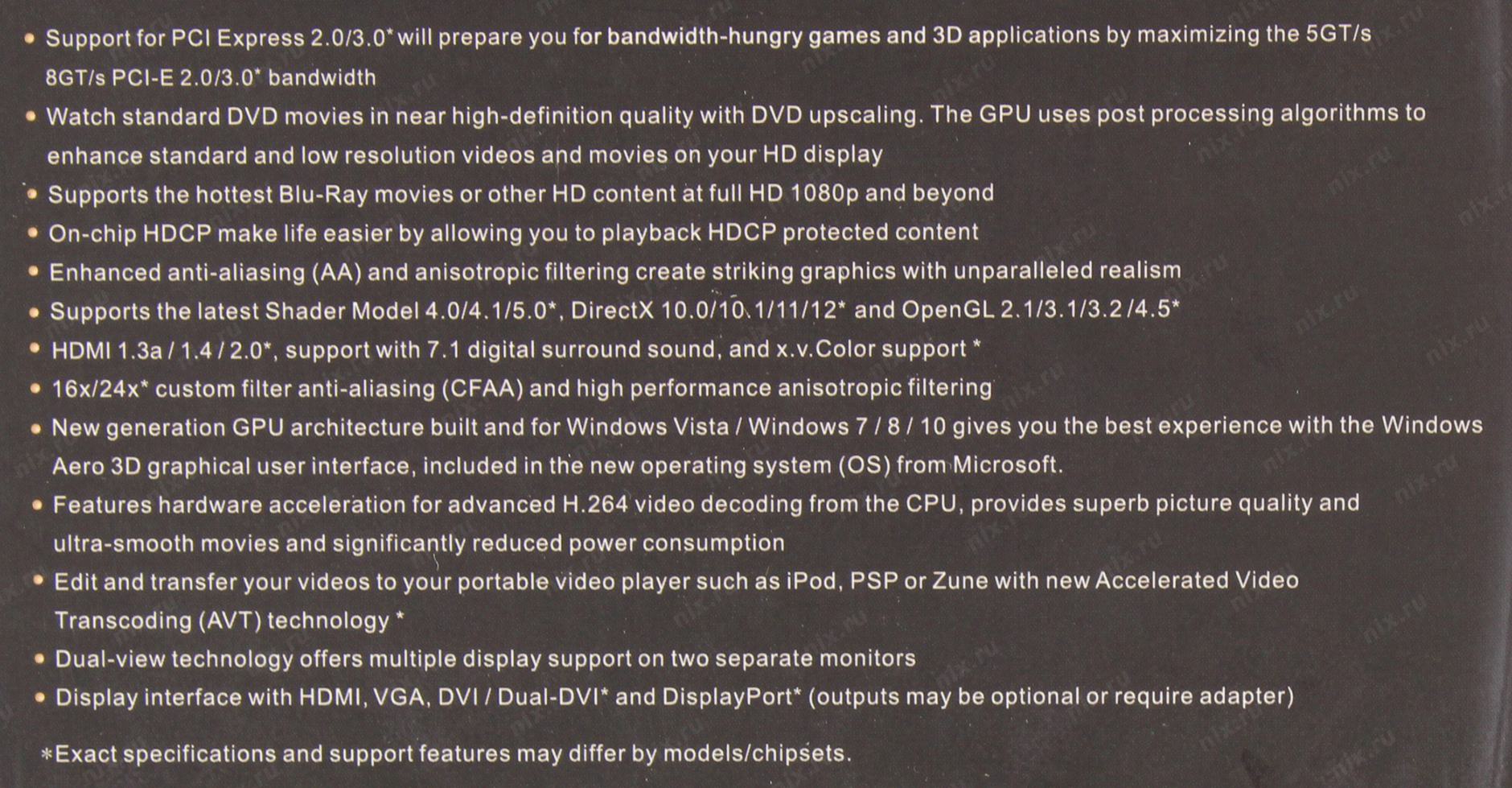 GPU Boost (динамическое изменение тактовой частоты процессора), NVIDIA G-SYNC (плавный вывод кадров на монитор), NVIDIA Ansel (создание игровых фотографий профессионального качества), NVIDIA GameStream-Ready (возможность трансляции игрового процесса на мобильные устройства), Boost 3.0 (технология автоматического разгона, учитывающая энергопотребление и температуру чипа видеокарты)