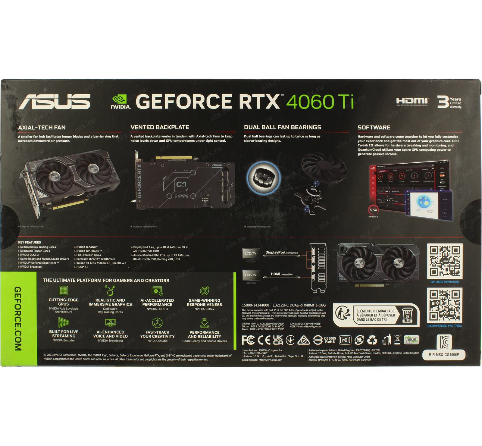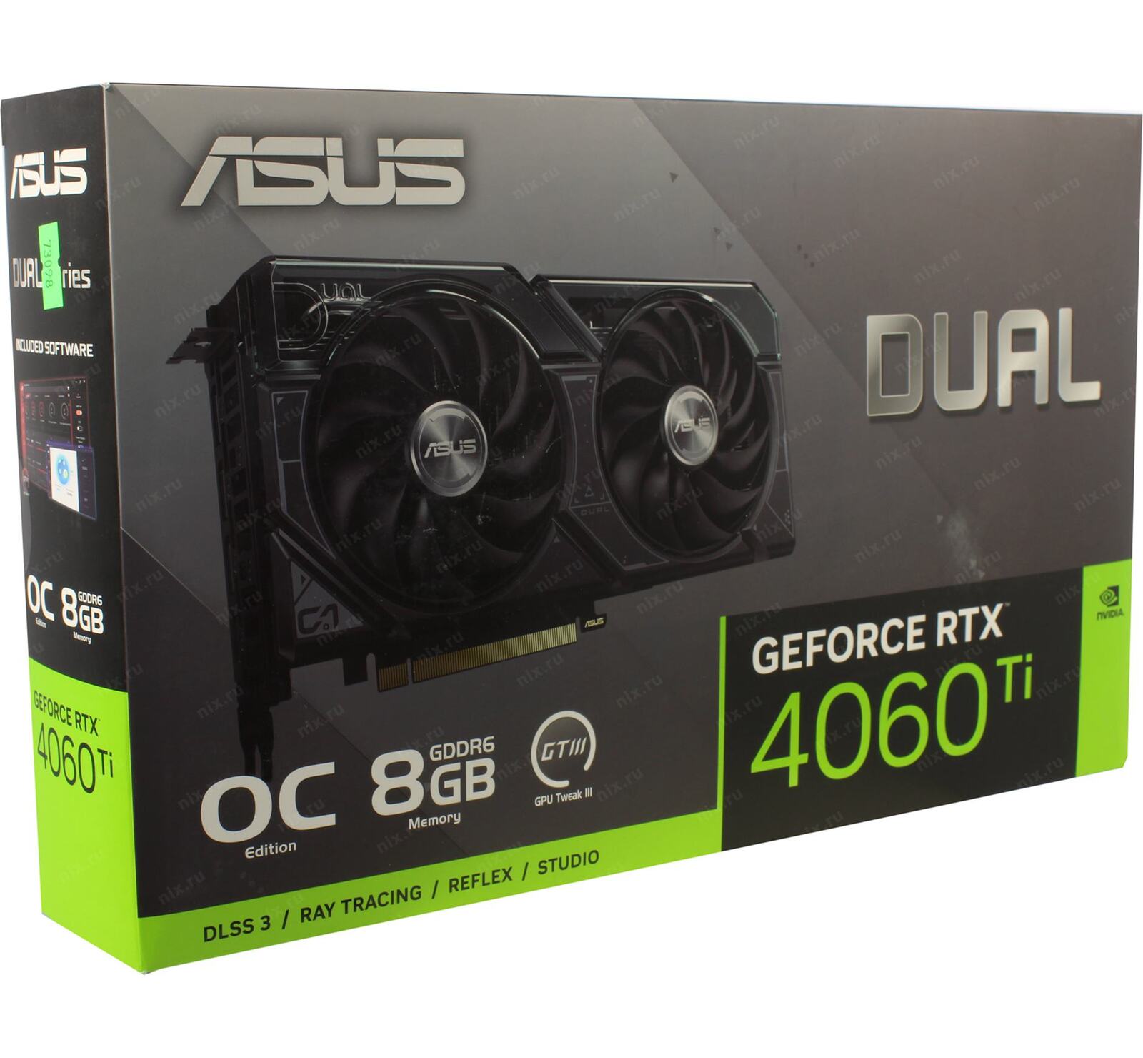 Видеокарта Asus PCI-E 4.0 DUAL-RTX4060TI-O8G NVIDIA GeForce RTX 4060TI 8Gb 128bit GDDR6 2520/18000 HDMIx1 DPx3 HDCP Ret