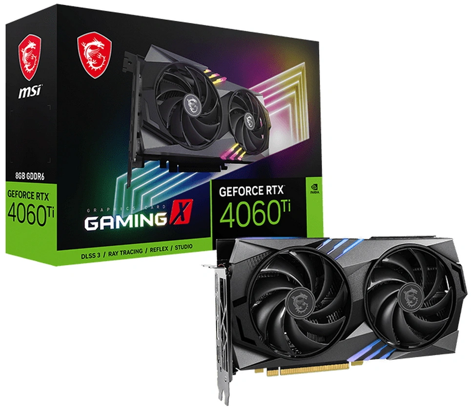 Видеокарта MSI PCI-E 4.0 RTX 4060TI GAMING X 8G NVIDIA GeForce RTX 4060TI 8Gb 128bit GDDR6 2640/18000 HDMIx1 DPx3 HDCP Ret RTX 4060 TI GAMING X 8G