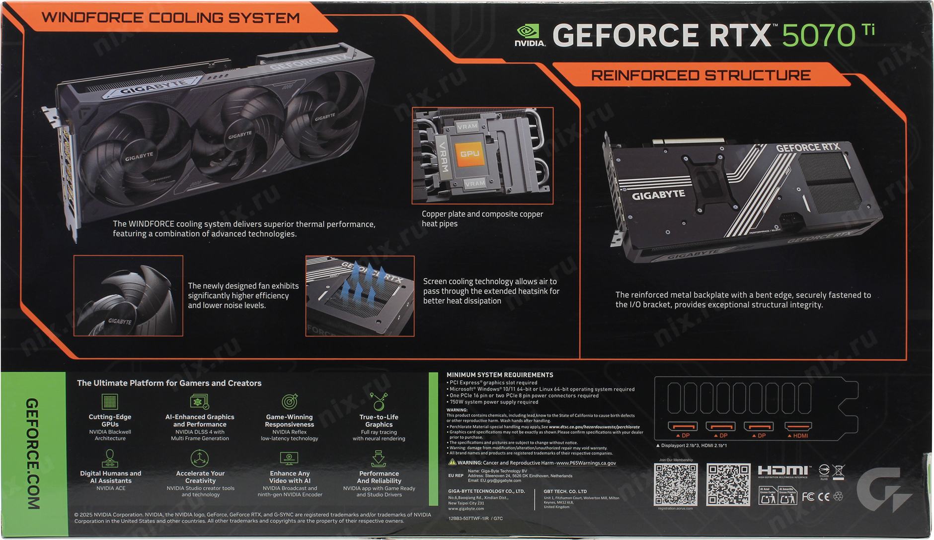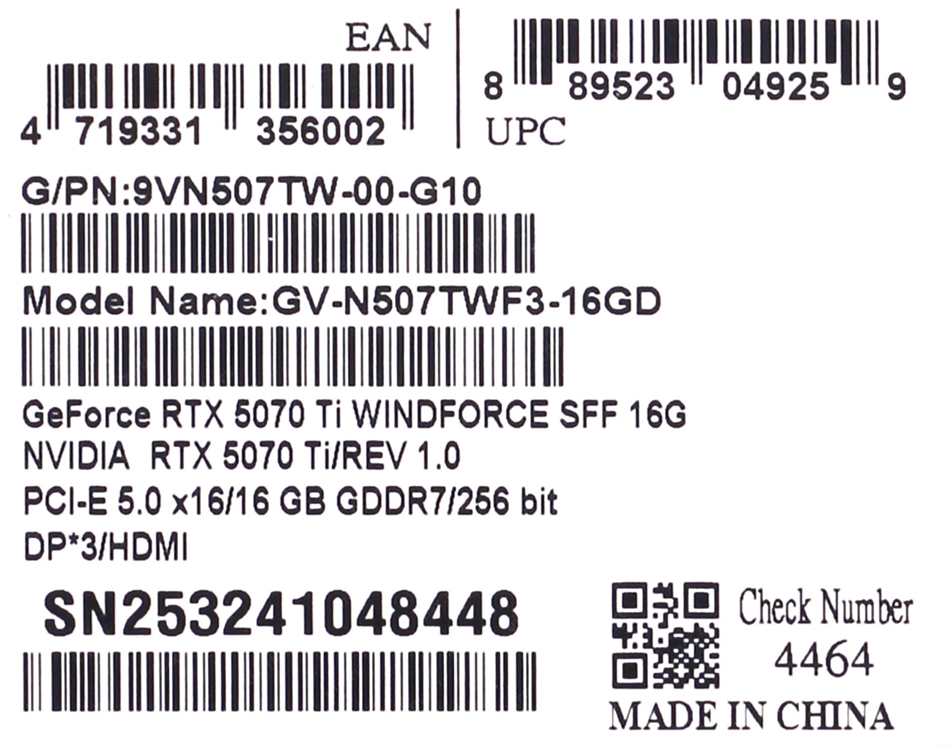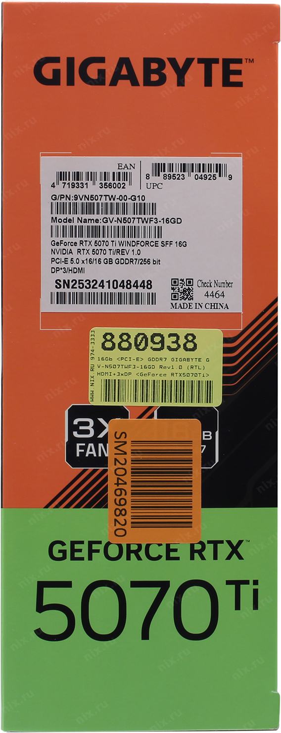 GIGABYTE RTX5070Ti WINDFORCE SFF 16Gb//RTX5070Ti, HDMI*1, DP*3, 16G,D7