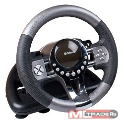 2 подрулевых переключателя, которые дублируют педали тормоза и газа. Угол наклона рулевой оси составляет меньше 45 градусов - руль не заслоняет монитор, и ничто не отвлекает игрока от трассы.