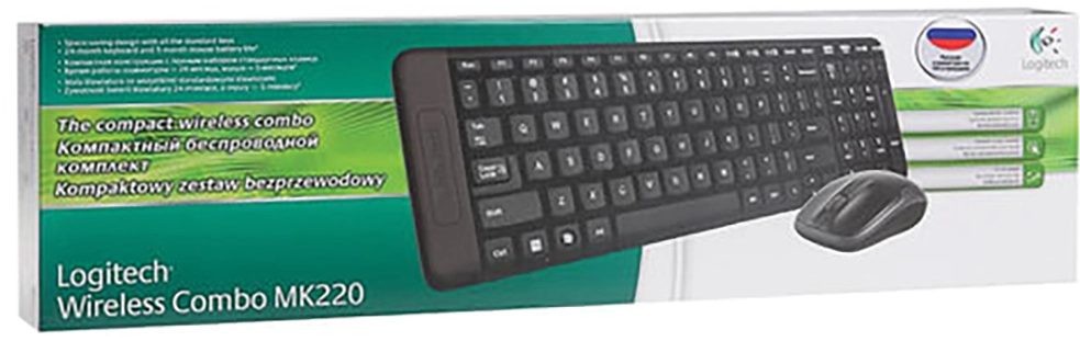 Клавиатура 920-003169 Logitech Клавиатура + мышь Wireless Combo MK220 Black USB оригинальная заводская гравировка RU/LAT