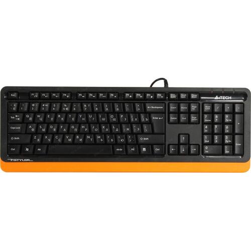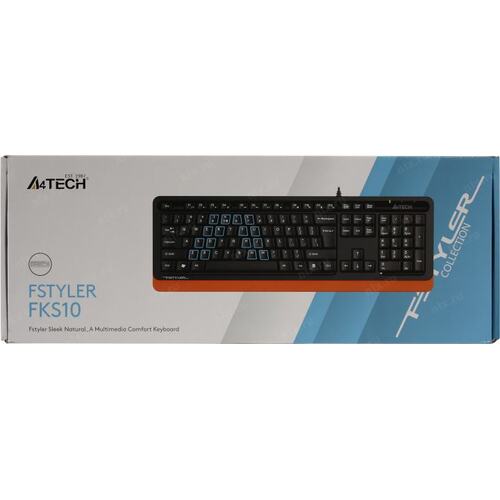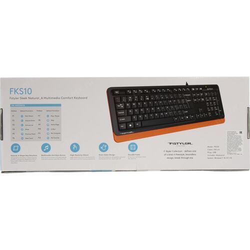 Клавиатура A4Tech FKS10 черный/оранжевый USB (подставка для запястий) (FKS10 ORANGE) кабель 1.5м