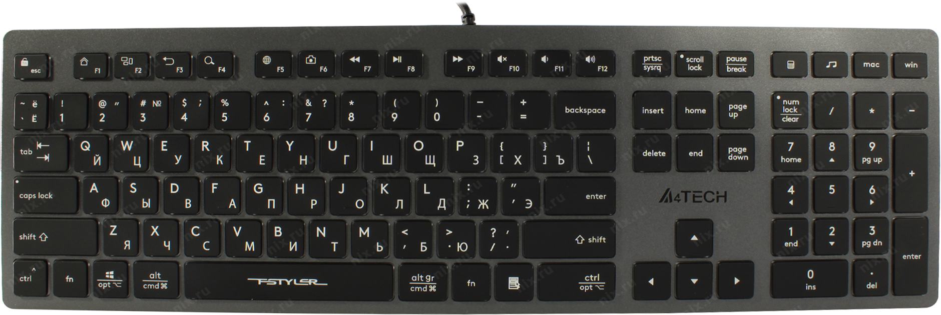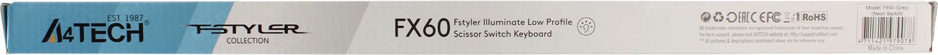 Клавиатура A4Tech FX60 серый USB slim LED (FX60 GREY / NEON) кабель 1.5м