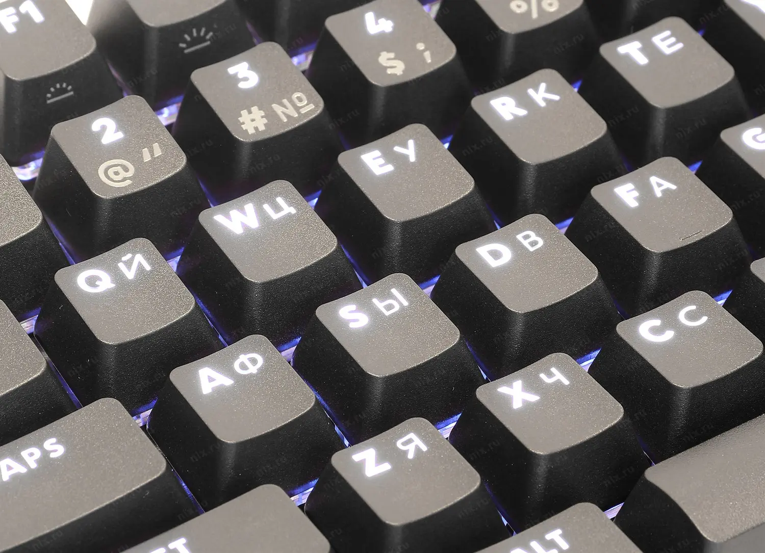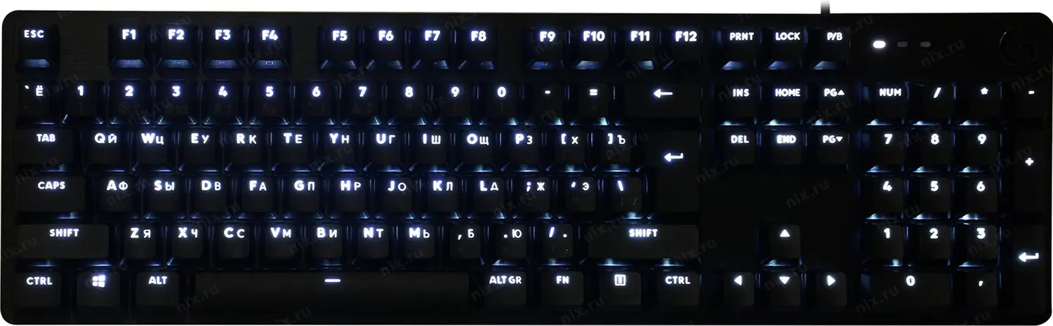 Игровая клавиатура с белой подсветкой символов, механическими переключателями