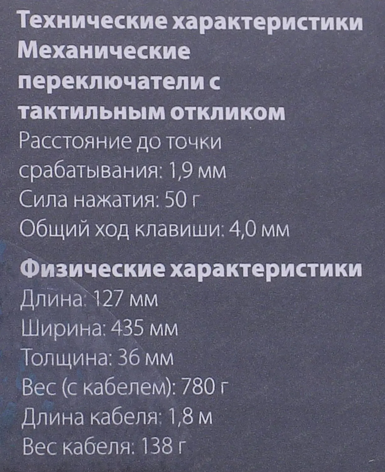 Длина кабеля клавиатуры