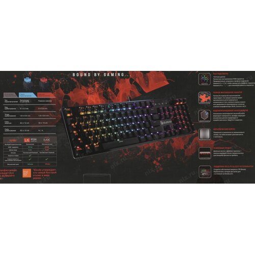 Клавиатура A4Tech B820R механическая черный USB for gamer LED (B820R BLACK (BLUE SWITCH)) кабель 1.8м