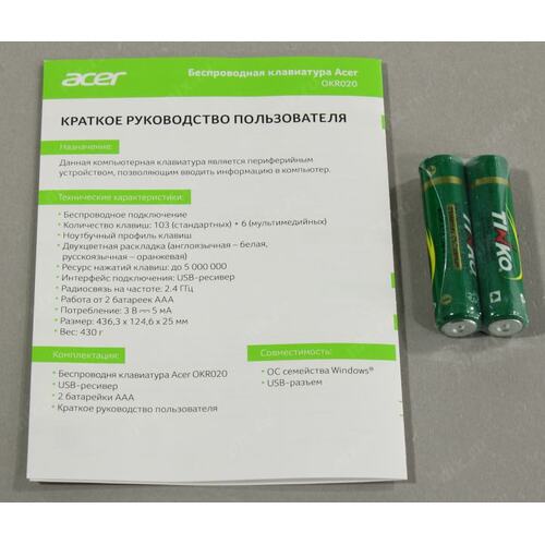 Клавиатура Acer OKR020 черный USB беспроводная slim Multimedia (ZL.KBDEE.004)