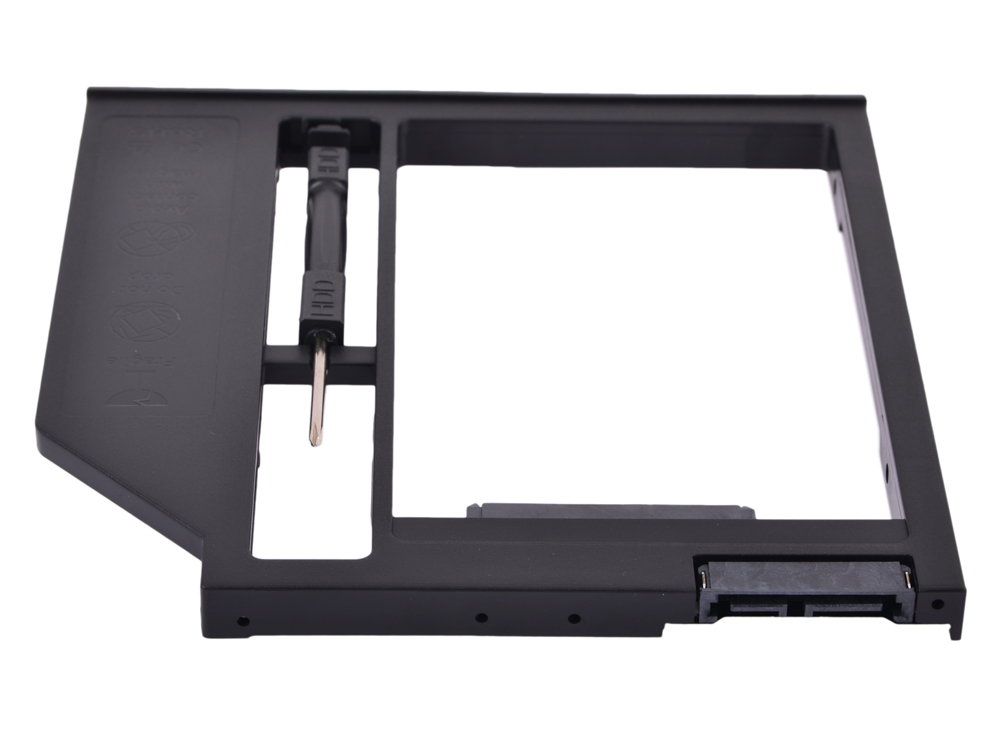 Переходник, позволяющий установить SATA SSD или HDD вместо оптического привода ноутбука высотой 9.5 мм. Такие устройства также называют Optibay, HDD Caddy, адаптер hdd вместо dvd