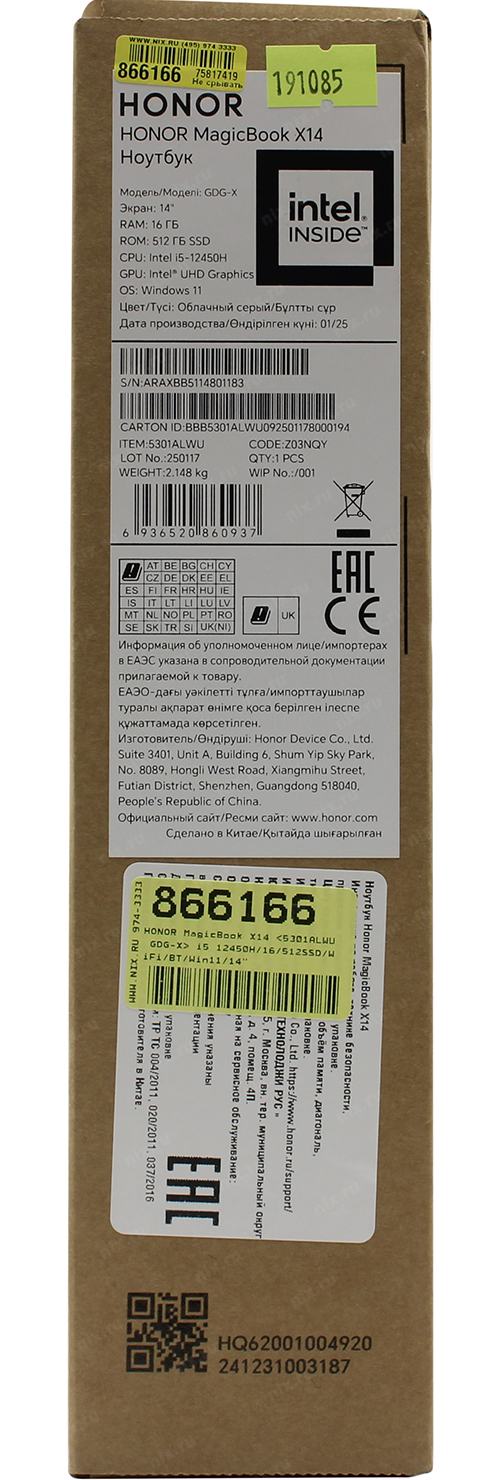 Ноутбук Honor MagicBook X14 2025 [5301ALWU] Grey 14"(FHD i5-12450H/16GB/512GB/W11)