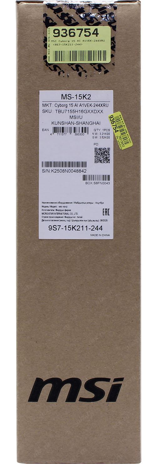 Ноутбук MicroStar MSI Cyborg 15 AI A1VEK-244XRU [9S7-15K211-244] Translucent Black 15.6" (FHD Ultra 7 155H/16Gb/SSD512Gb/RTX4050 6Gb/NoOS)