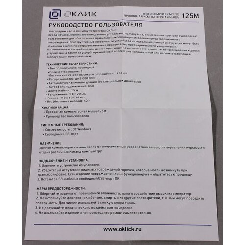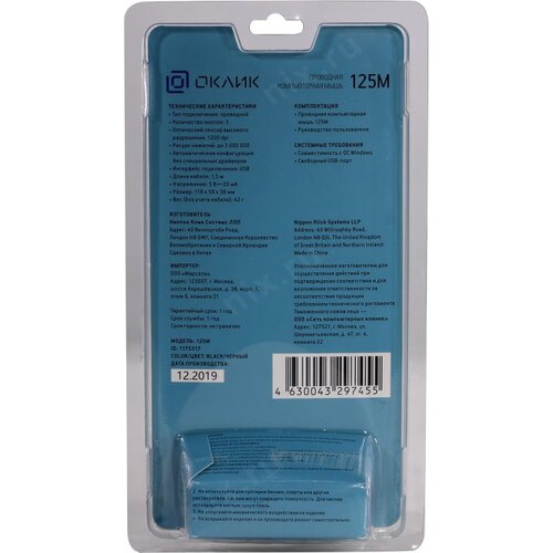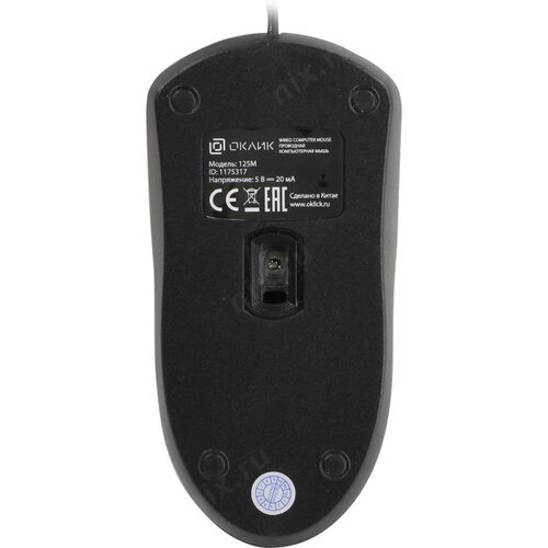 Мышь Oklick 125M черный оптическая (1200dpi) USB (2but) [1175317]