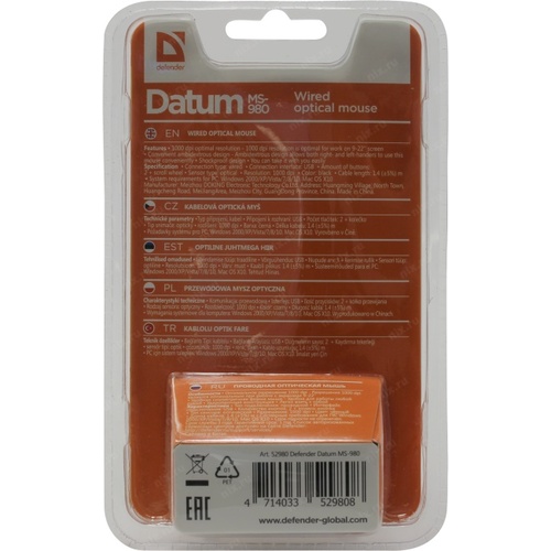 Мышь Defender Datum MS-980 черный [52980] (Проводная оптическая мышь, 3 кнопки,1000dpi)