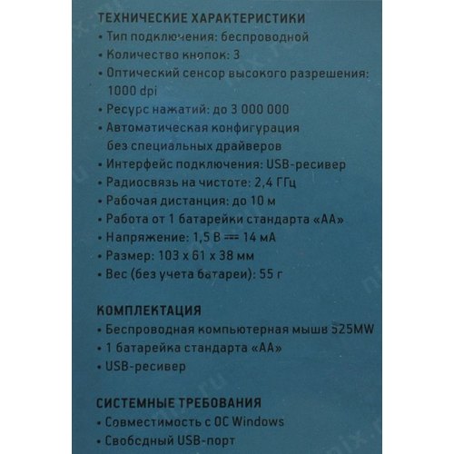 1 батарейка типа AA, USB-приемник