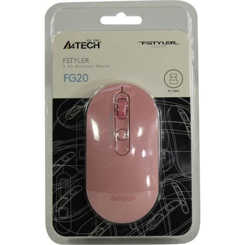 Мышь A4Tech Fstyler FG20 розовый оптическая 2000dpi беспров. USB для ноутбука 4but (FG20 PINK) FG20 PINK