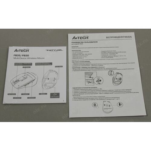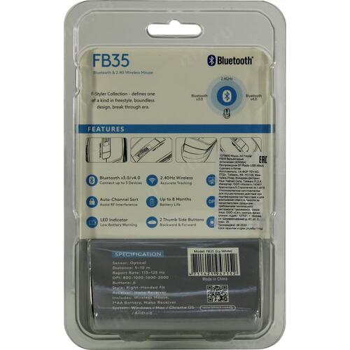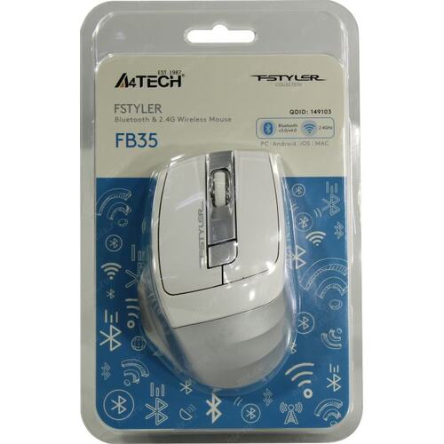 Мышь A4Tech Fstyler FB35 белый/серый оптическая 2000dpi беспров. BT/Radio USB для ноутбука 6but (FB35 ICY WHITE)