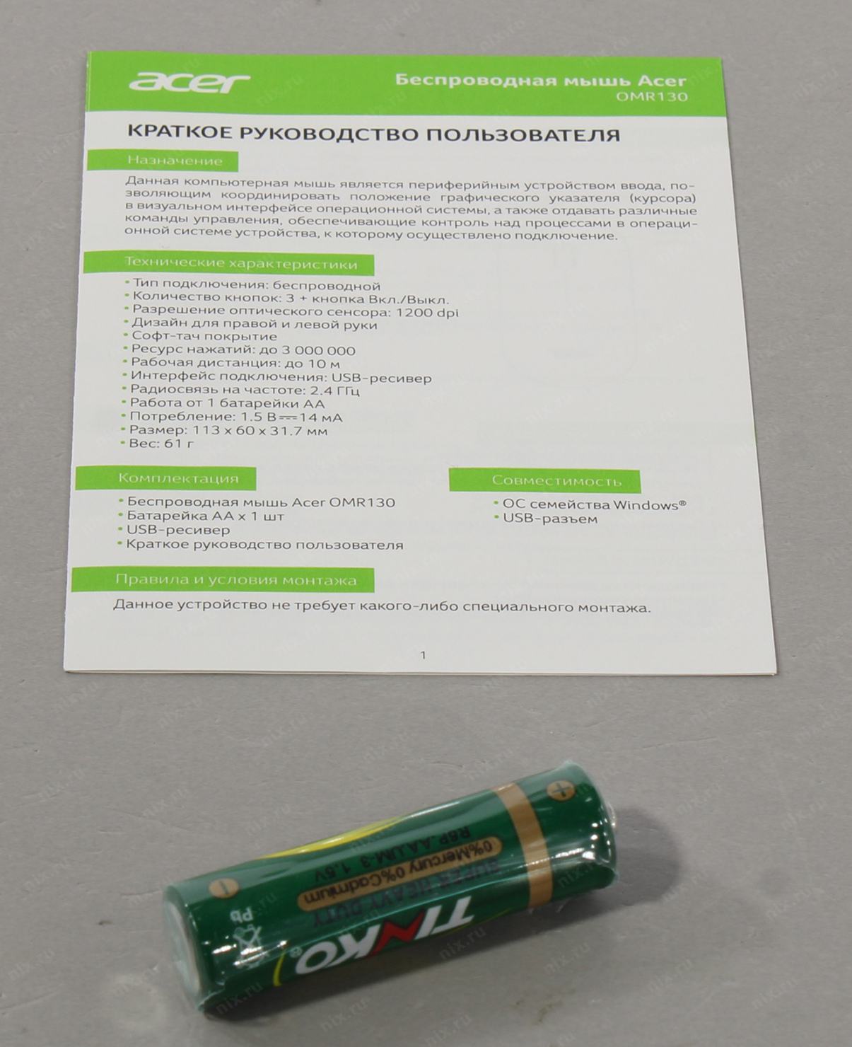 Acer OMR130 [ZL.MCEEE.00F] черный оптическая (1200dpi) беспроводная USB (3but)