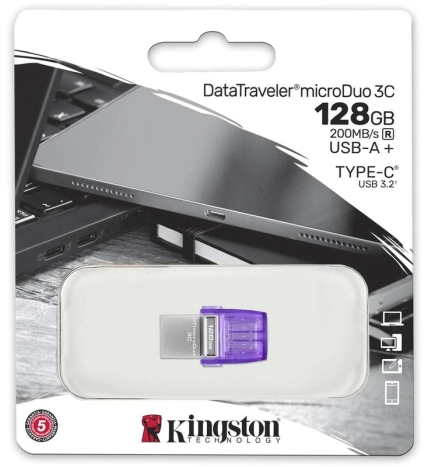Флеш Диск Kingston 128Gb DataTraveler microDuo 3C DTDUO3CG3/128GB USB3.0 фиолетовый