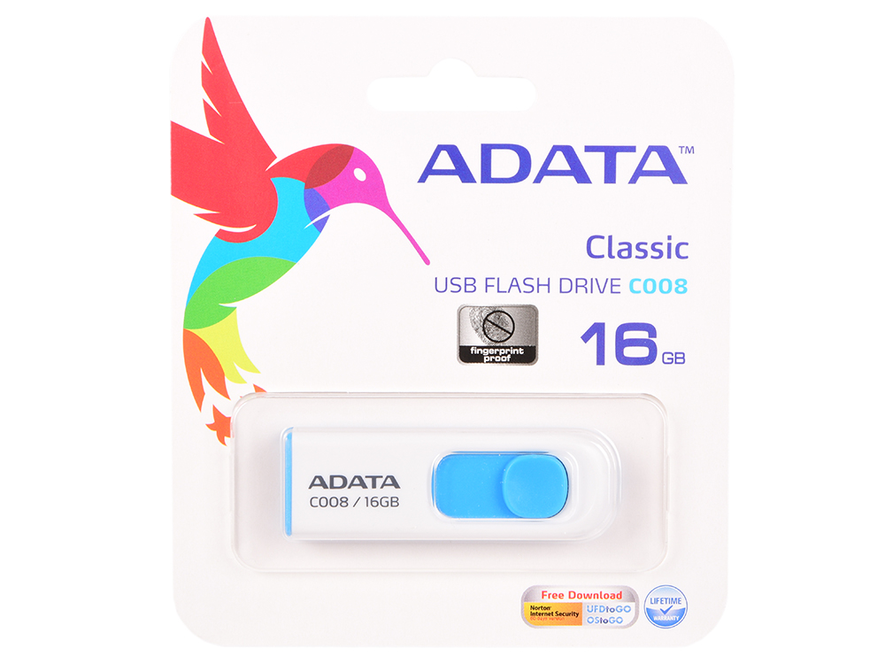 Флеш Диск A-Data 16Gb Classic C008 AC008-16G-RWE USB2.0 белый/синий