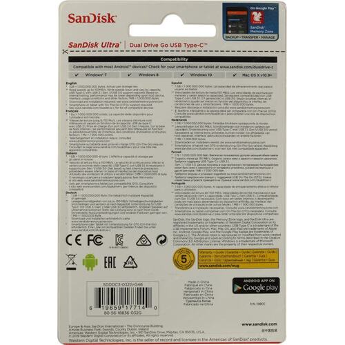 USB накопитель SanDisk Ultra Dual Drive Go USB Type-C Flash Drive 32GB (SDDDC3-032G-G46)