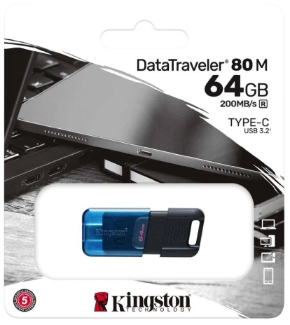 Флеш Диск Kingston 64Gb DataTraveler 80 M Type-C DT80M/64GB USB3.2 черный