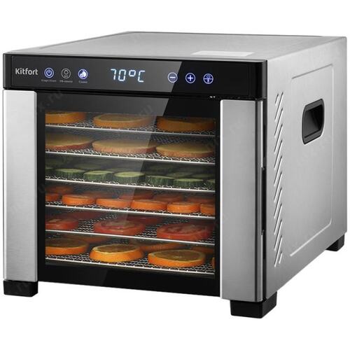Вместительная электрическая сушилка Kitfort КТ-1916 предназначена для сушки овощей, фруктов, ягод, грибов, корнеплодов, трав и зелени, а также мяса и рыбы, хлеба. С помощью специальных сплошных поддонов можно готовить пастилу.