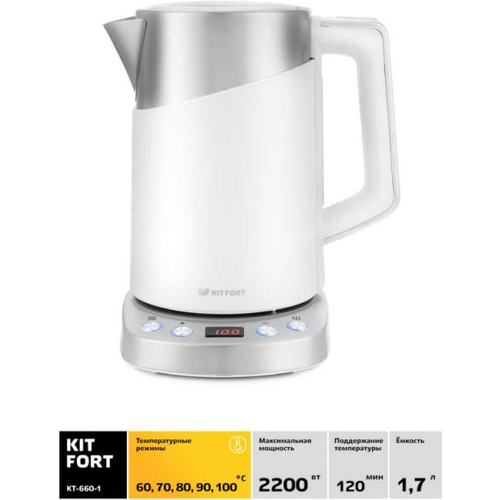 Чайник электрический Kitfort КТ-660-1 1.7л. 2200Вт белый корпус: металл/пластик