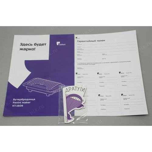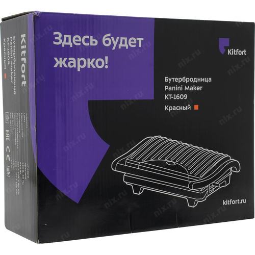 Удобная и простая в эксплуатации бутербродница Kitfort KT-1609 станет настоящей помощницей на вашей кухне. Вы сможете без труда приготовить бутерброды, панини, сэндвичи, гренки, тосты, сосиски-гриль и многое другое.; Ребристая поверхность рабочих пластин и высокая температура приготовления способствуют быстрому приготовлению и появлению характерного «полосатого» рисунка на продуктах. Бутербродница оснащена термостатом для поддержания постоянной температуры рабочих поверхностей и индикатором, показывающим включение и отключение нагрева.