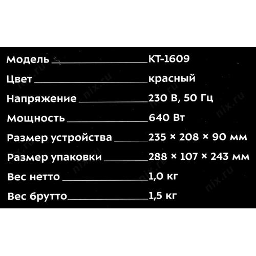 Сэндвичница Kitfort КТ-1609 Panini Maker 640Вт красный/черный