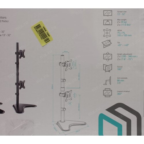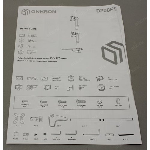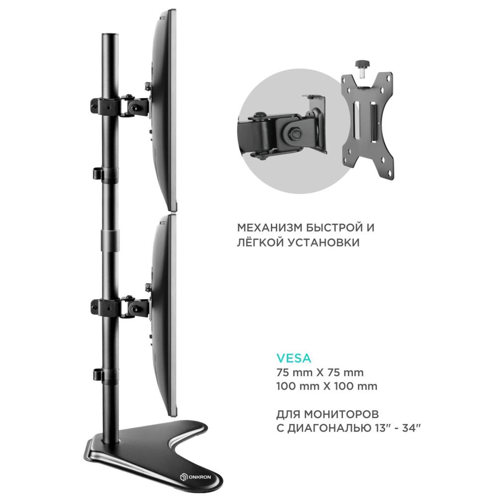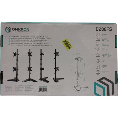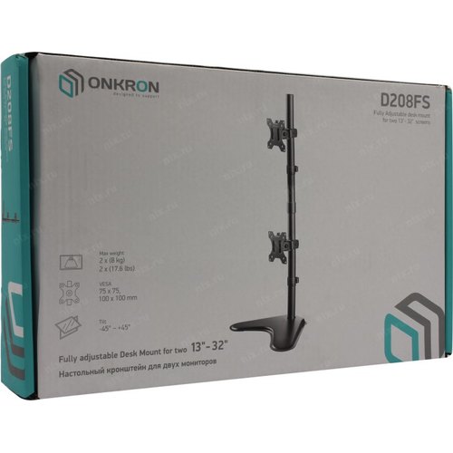 Крепления для мониторов ONKRON D208FS чёрный (Для мониторов диагональю 13"-34" Максимальная нагрузка: 2х8 кг (17.6 lbs) VESA: 75x75, 100х100мм) [4603728441740]