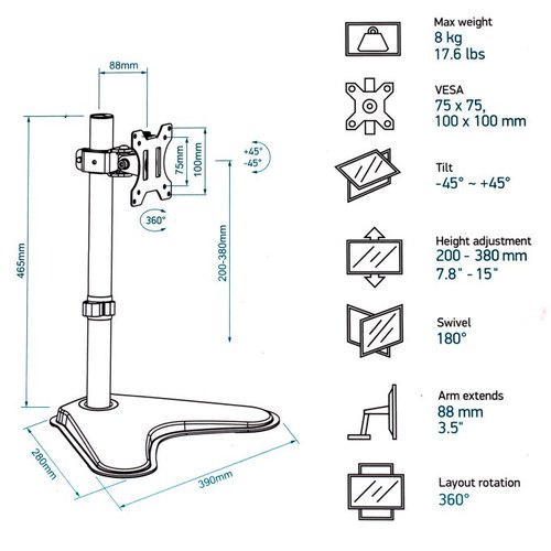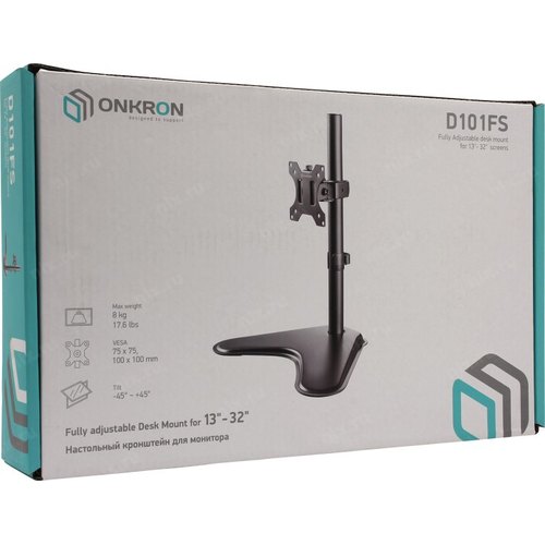 Крепления для мониторов ONKRON D101FS чёрный (Для мониторов диагональю 13"-34" Максимальная нагрузка: 8 кг (17.6 lbs) VESA: 75x75, 100х100мм) [4603728441733]