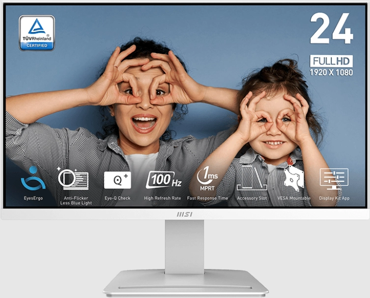 Монитор MicroStar MSI PRO 24" MP2412W белый (VA 1920x1080 100Hz 5ms 16:9 300cd 178/178 HDMI DisplayPort M/M) [9S6-3BA9CH-072]