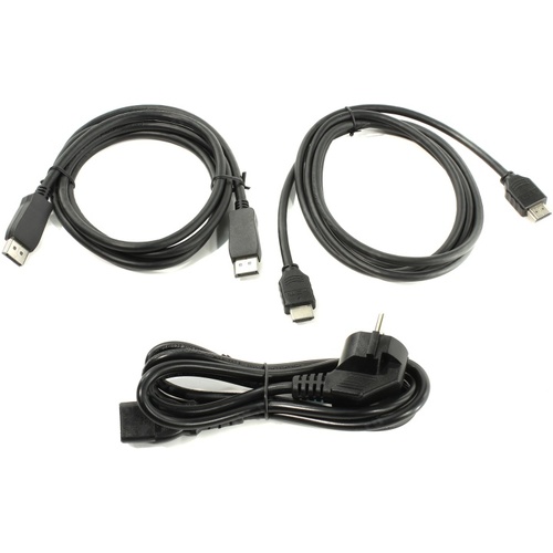 Кабель питания, кабель DisplayPort, кабель HDMI, диск с документацией и ПО