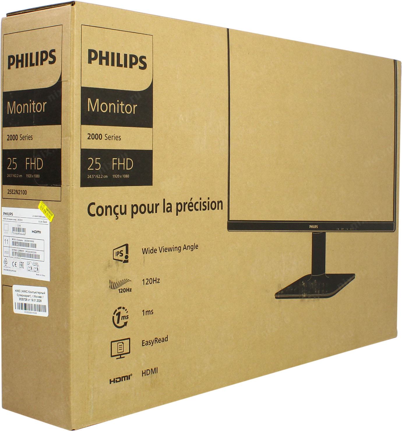 Монитор 25" PHILIPS 25E2N2100 (00/60) Black (IPS, 1920x1080, 120Hz, 1 ms, 178°/178°, 300 cd/m, 1500:1, +HDMI 1.4 (AC ext))