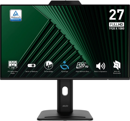 Монитор MicroStar MSI PRO 27" MP272PMG (IPS 1920x1080 120Hz 4ms 1500:1 300cd D-Sub HDMI DisplayPort 2xUSB Webcam Speaker HAS Pivot VESA) [9S6-3PD99T-004]