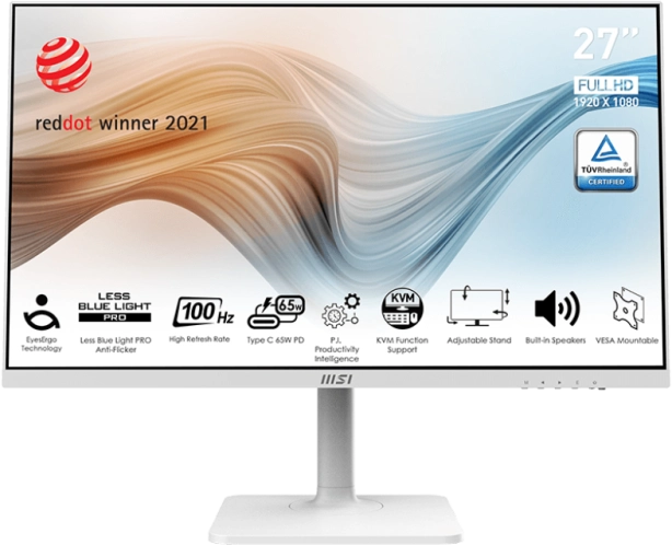 Монитор 27" MSI Modern MD272XPW White (IPS, 1920x1080, HDMI+DP+Type C, 4 ms, 178°/178°, 300 cd/m, 1000:1, 100Hz, Spk, Pivot) (3PB1) 9S6-3PB19H-298