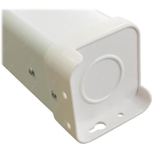 Корпус квадратного сечения имеет по всей длине внутренний выступ, предотвращающий произвольное развертывание полотна;;Корпус выполнен из стали с белым полимерным покрытием. Торцевые заглушки корпуса изготовлены из ударопрочного белого пластика.