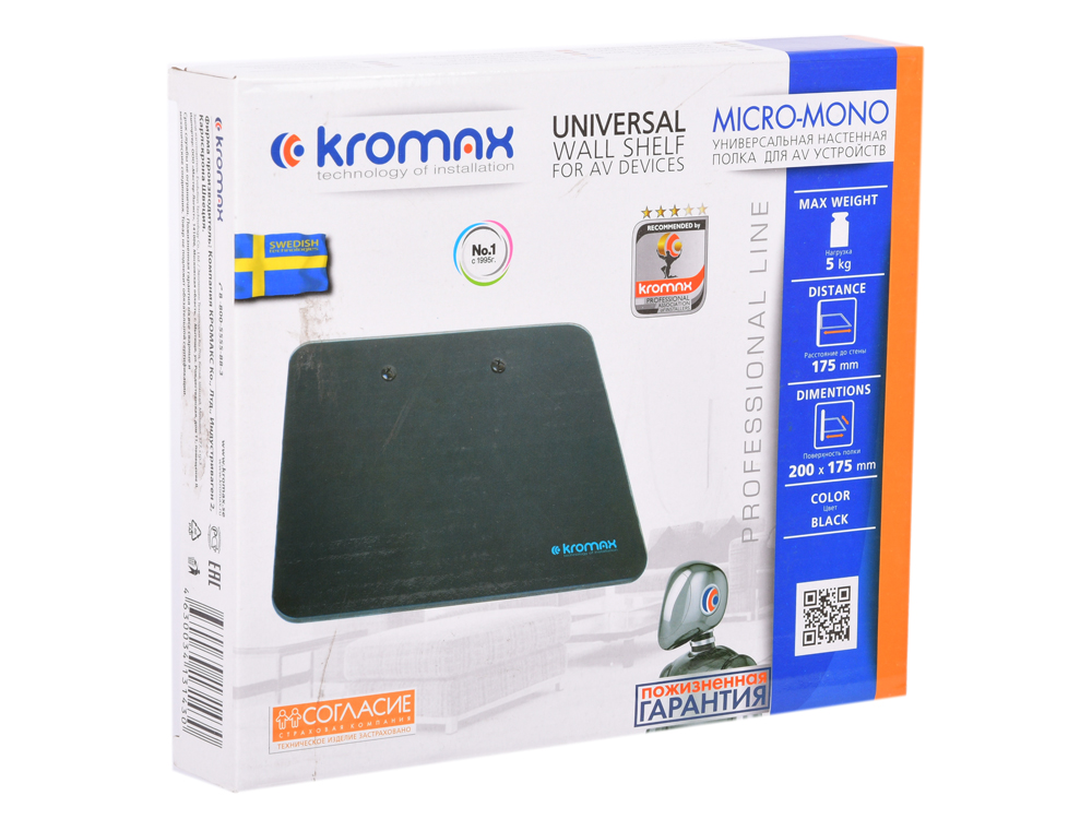 Крепеж Kromax MICRO-MONO black, Кр. наст. для A/V систем, max 5 кг,в от ст. 200 мм, шир 175 мм. [26026]