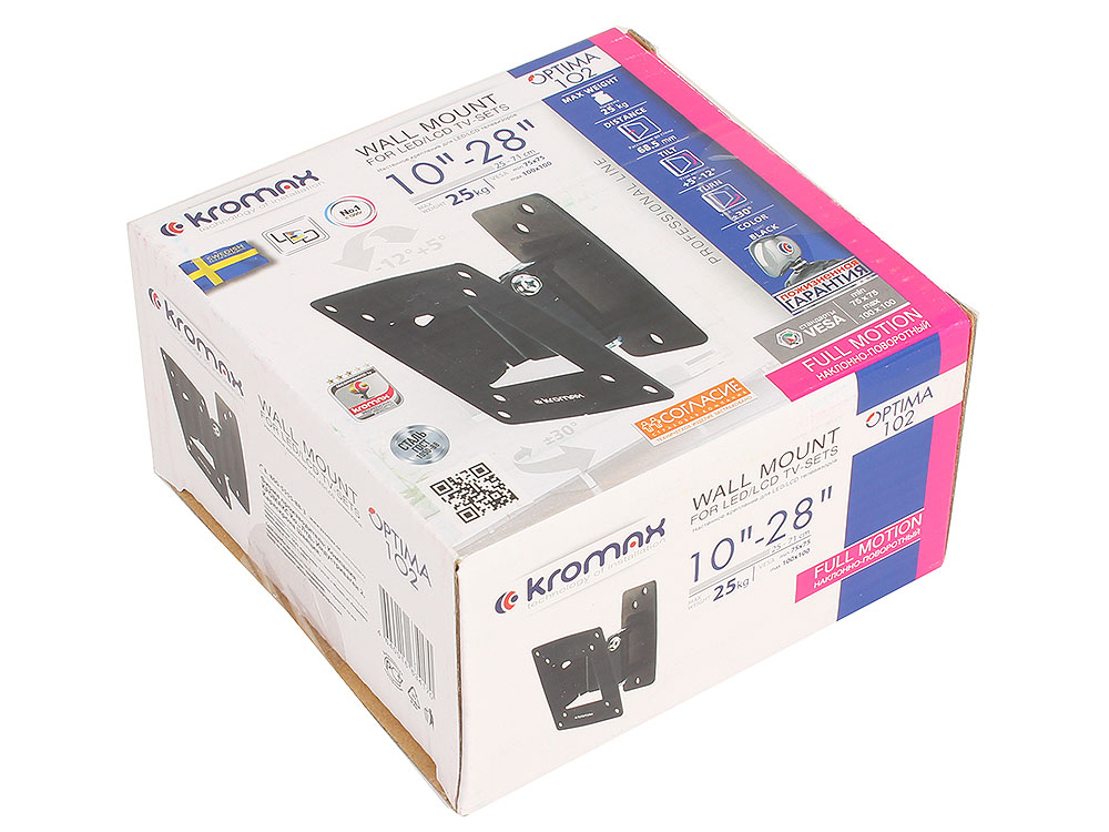 Кронштейн для телевизора Kromax OPTIMA-102 черный 10"-28" макс.25кг настенный поворот и наклон 28002