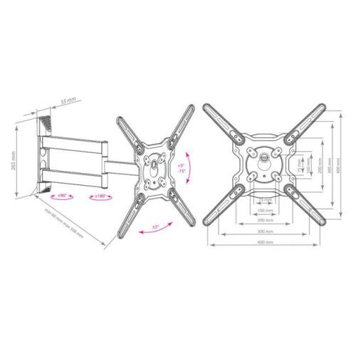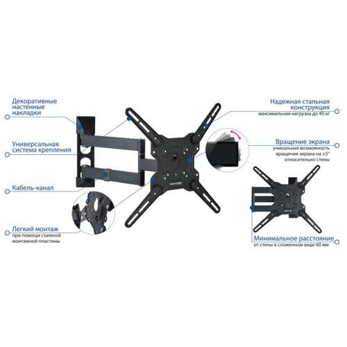 Кронштейн для телевизора Kromax OPTIMA-406 серый 22"-65" макс.40кг настенный поворот и наклон 20240