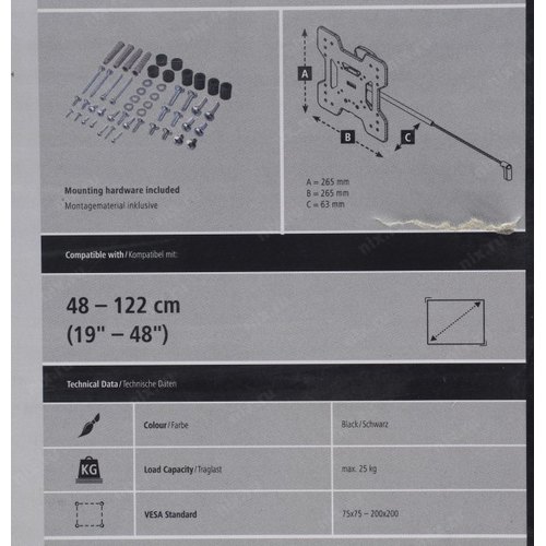Настенное крепление для телевизоров с диагональю от 19 до 48 дюймов и весом не более 25 кг