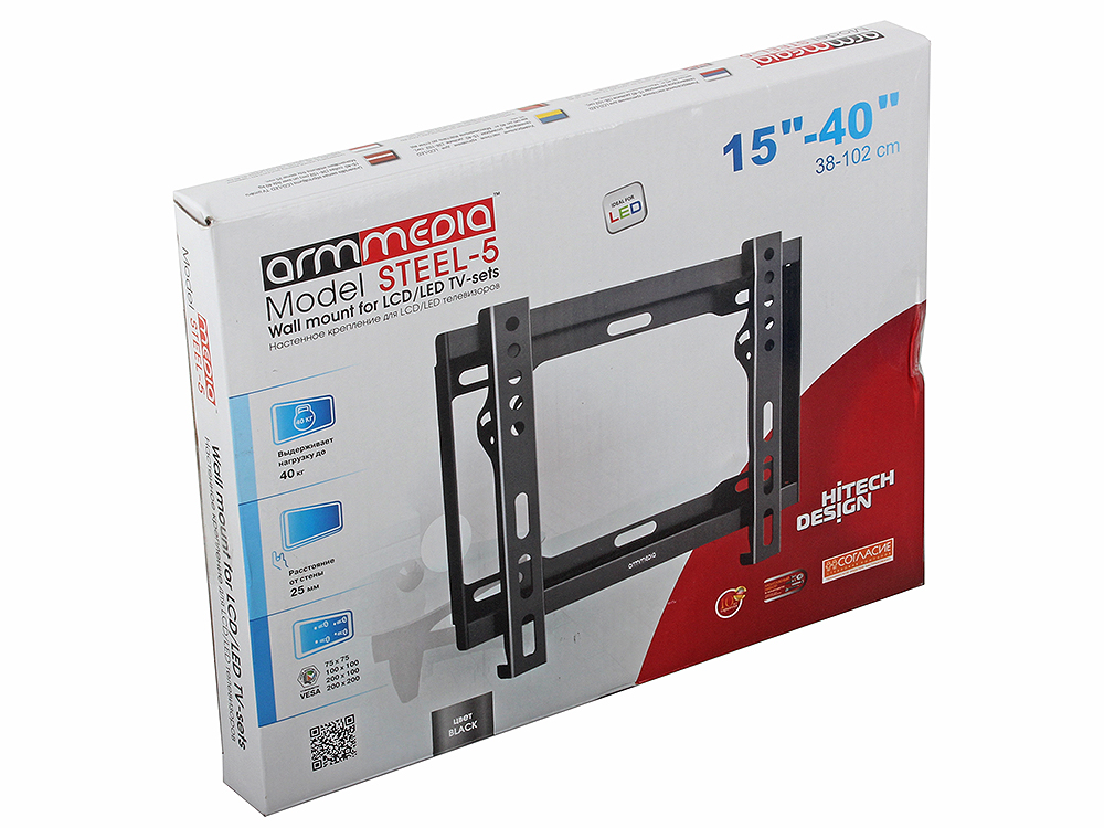 Крепеж Arm Media STEEL- 5 черный 15"-47" макс.35кг настенный наклон [10156]