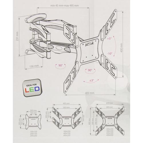Крепеж Arm Media COBRA-45 черный 22"-65" макс.45кг настенный поворотно-выдвижной и наклонный [10245]