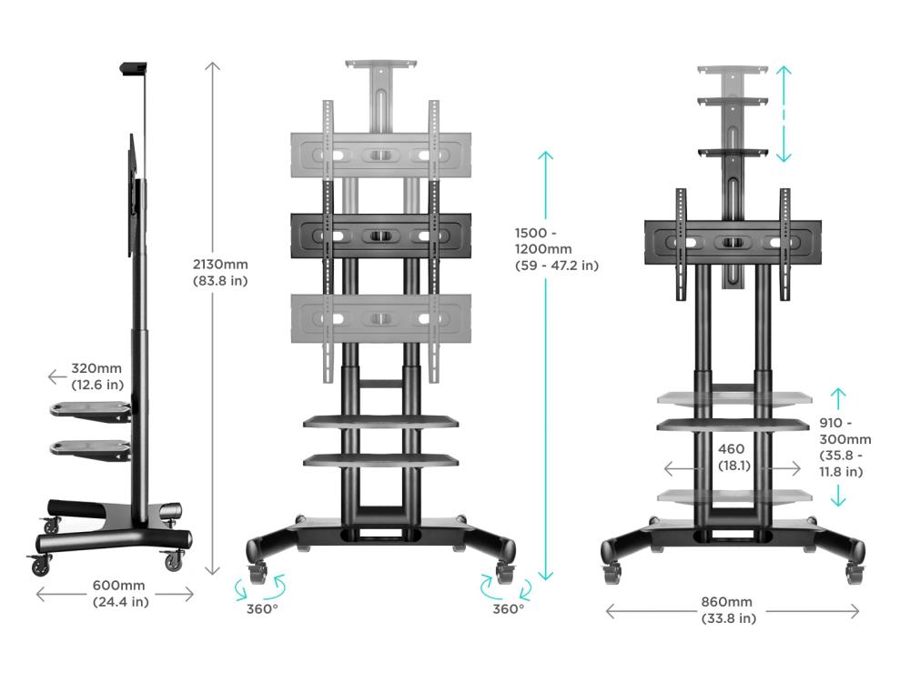 Мобильная стойка для телевизора с диагональю от 40 до 70 дюймов и весом не более 45.5 кг