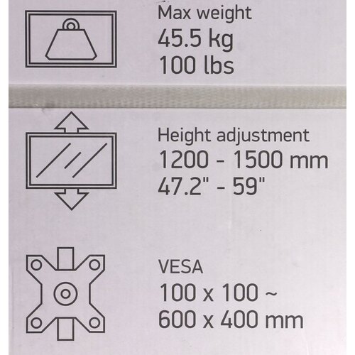 VESA 100 x 100, VESA 200 x 200, VESA 300 x 200, VESA 300 x 300, VESA 400 x 300, VESA 400 x 400, VESA 600 x 400